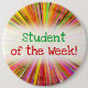 This colourful, positive button design features the message "Student of the Week!". A button like this might be used to help give positive motivation to a student. [~Z0000317]
