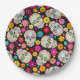 Colourful Sugar Skulls and Flowers Fiesta on Black Paper Plate