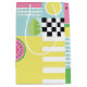 Fun summer fruit design, watermelon kiwi sun sea, modern mosaic