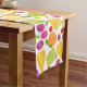 A bright pattern of colourful fruits. Pears, apples, cherries and plums and citrus. This table runner adds a cheerful touch to your spring or summer theme decor. They're especially great for adding a splash of colour to your table. Click on the Customise It button to change the background colour from white to another colour.
