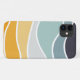 Abstract retro style summery illustration of colourful (yellow, blue, orange, navy blue, mustard, turquoise) waves decoration on white background