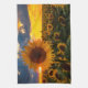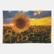 Perfect for the sunflower lover. Vibrant Sunflowers with a sunburst shining through the petals against stormy skies at sunset. .