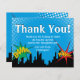 Thank you card flyer (envelopes not included). Fresh and festive vibrant bright primary colours with halftone, cloud bursts and explosions, bam and pow! Powerful graphic Superhero for a fun boy's kids birthday party favour and decoration.