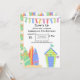 Surf's Up! Celebrate a birthday at the beach or a beach/ surfing theme. This colourful invitation has a string of flip flops hanging across the top, theres a surf shop with a cluster of surf boards on the bottom. Personalise with your party information.
