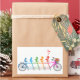 colourful tandem bicycle with cute birds family, hearts and flower basket, vector drawing, art illustration