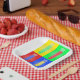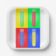 Four brightly coloured test tubes. This design looks really effective on these Paper Plates