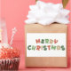 Modern simple colourful seasonal design. Merry Christmas and Happy new Year sticker.