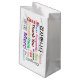 Colourful Thank You, Merci, Grazie, Dank Gift Bag. Green, blue, yellow, orange, brown and red in a geometric design. Customise background colour. Great for a Christmas, office or dinner party