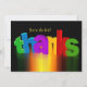 A colourful "thanks" word that jumps out at you from the black background. (Pix). The card is easy to customise with your wording, font and font colour. Not exactly what you're looking for? All our products can be custom designed to meet your needs at no extra charge. Simply contact us at askcottonlamb@gmail.com. Coordinating products available at your request at no additional charge.