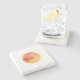The coasters are gorgeous, a quality feel and heavy weight. They look like a precious archeological find. A rustic stone juxtaposed with a modern floral black and white print. I like the way the print goes slightly imperfect on the cut stone edges giving them a kind-of natural beauty.