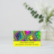 Very vibrant colourful graphic design in yellow, pink ,blue and green. The mosaic tiles have the look of a psychedelic trance. Perfect business card for a new age, spa, makeup or artist company. Customise this card by clicking "Customise it" and replace the sample text with your text by clicking "change text".