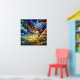 This colourful artwork features a tornado, lightning, and prairie grasses done in the style of stained glass.