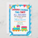 This design features a colourful train, bunting flag and building abc blocks. Great for a 2nd birthday party.
