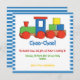 Colourful train kids birthday blue, white border invitation