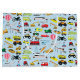 A cute and colourful kids transportation and vehicles pattern for boys and girls. Beautifully illustrated images of construction trucks, excavator, dump truck, garbage truck, fire truck, monster truck, concrete truck, train, helicopter, hot air balloon, ice cream truck, motorcycle, rocket, car and much more. Ideal children's and toddlers birthday gift, nursery decor, kids room art, home decor, Christmas present or gift for any other special occasion.
