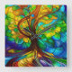 Colourful Tree of Life Stained Glass Look Square Wall Clock