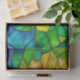 Colourful leaves Gold, blues and green tree of life stained glass look
