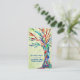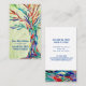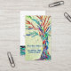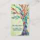 This unique business card features a multicolored mosaic tree on a pale green background.