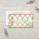 This business card has a red and green trellis with very subtle tendrils of foliage. I've included templates on the front and back for your own information and personalisation. There are several paper options available, be sure to compare the thickness and gloss that would be right for your business. All items are filled by Zazzle and are 100% satisfaction guaranteed. For your order and shipping issues, please contact Zazzle's Customer Support via https://goo.gl/nCgptf