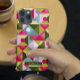 Colourful Trendy Modern Girly Pattern Personalised Name Smartphone iPhone Case features a colourful geometric pattern in shades of pink, green and blue with your personalised name in modern elegant script typography. Perfect for birthday, Christmas, Mother's Day, sister, best friend and more. Designed by © Evco Studio www.zazzle.com/store/evcostudio
