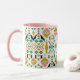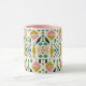 Colourful tribal pattern with gold, pink and turquoise geometric shapes.