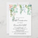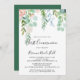 This colourful tropical floral first communion invitation is perfect for a modern religious event. The design features illustrated white, yellow, pink, blush flowers with beautifully watercolor green leaves, inspiring elegance.