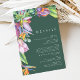 This colourful tropical floral | green detail enclosure card is perfect for your modern boho destination, green, purple, peach wedding. Design features an elegant bouquet of classic beach watercolor greenery and flowers that may include sage green eucalyptus, mauve and red protea, blush pink hibiscus, orange and blue bird of paradise, and dark green palm leaf. The design is ideal for a simple, creative, unique travel wedding for spring, summer, fall, or winter! Please find other matching or coordinating wedding stationery in the rest of the collection.