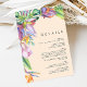 This colourful tropical floral | peach detail enclosure card is perfect for your modern boho destination, green, purple, peach wedding. Design features an elegant bouquet of classic beach watercolor greenery and flowers that may include sage green eucalyptus, mauve and red protea, blush pink hibiscus, orange and blue bird of paradise, and dark green palm leaf. The design is ideal for a simple, creative, unique travel wedding for spring, summer, fall, or winter! Please find other matching or coordinating wedding stationery in the rest of the collection.
