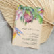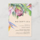 This colourful tropical floral peach wedding reception enclosure card is perfect for your modern boho destination, green, purple, peach wedding. Design features an elegant bouquet of classic beach watercolor greenery and flowers that may include sage green eucalyptus, mauve and red protea, blush pink hibiscus, orange and blue bird of paradise, and dark green palm leaf. The design is ideal for a simple, creative, unique travel wedding for spring, summer, fall, or winter! Please find other matching or coordinating wedding stationery in the rest of the collection.