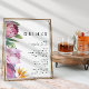 This colourful tropical floral wedding drinks sign is perfect for your modern boho destination green, purple, peach wedding. Design features an elegant bouquet of classic beach watercolor greenery and flowers, including sage green eucalyptus, mauve and red protea, blush pink hibiscus, orange and blue bird of paradise, and dark green palm leaf. The design is ideal for a simple, creative, unique travel wedding for spring, summer, fall, or winter! Please find other matching or coordinating wedding stationery in the rest of the collection.