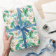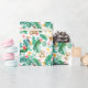 Wrap gifts for your child's summery tropical jungle themed birthday with this colourful patterned wrapping paper. Island chic design features a repeating pattern of monstera leaves and green watercolor foliage with monkeys, sloths, parrots, and hummingbirds adorned with pink and yellow tropical flowers.