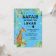This jungle safari theme birthday party invitation features a sweet giraffe surrounded by tropical leaves and pretty flowers, all against a cheerful blue background. Mix and match this safari animal kids birthday collection with other adorable items for your child's big day. Great for boys or girls who love giraffes and adventure.