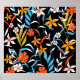 Trending abstract pattern with colourful tropical leaves on dark background.