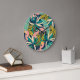 Vibrant vintage jungle print, tropical leaves on dark background.