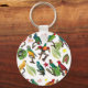 Colourful Tropical Parrots, Leaves & Flowers Key Ring