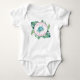 This tropical baby bodysuit features an original watercolor sea turtle and monstera leaf art by Victoria Grigaliunas. It features the words "Life is better at the beach" and can be personalised to read what you like. The pink type makes it perfect for a baby girl. To see more baby clothes with Victoria's artwork or matching under the sea designs shop www.zazzle.com/dotellabelle