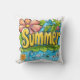 Celebrate sunshine, vibrant colours, and warm island vibes with this Colourful Tropical "Summer" Decorative Pillow! Designed to capture the carefree energy of summer, this cheerful pillow features the word “Summer” in bold yellow lettering, surrounded by hand-drawn tropical leaves, blooming flowers, and a bright blue sky backdrop. It's a playful piece of décor that instantly brightens up any room and brings a smile to your space.