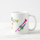 Fun music themed ceramic mug, with a colourful trumpet pattern and custom text. Great gift idea for any jazz music lover or trumpet player. Personalise the text to read what you want.