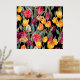An elegant display of tulips on a black canvas; a watercolor painting turned seamless pattern, rich with nature and blooming with style.