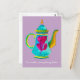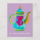 A cute watercolor llustration of a colourful Turkish teapot in blue and pink illustration style. Whimsical and cute for tea lovers.