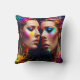 Colourful Twin Faces With Neon Effects at Night Cushion