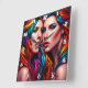 Colourful Twin Portrait With Bold Hair Square Wall Clock