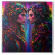 Colourful Twin Portraits With Curly Hair Design Ceramic Tile