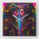 Colourful Twin Portraits With Curly Hair Design Square Wall Clock