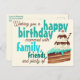 The horizontal postcard cover offers fun and colourful birthday wishes with cake and ice cream on the front and the back offers room for a handwritten note with template return address and a repeating "Happy Birthday!" template text vertical divider. Personalise, delete or edit using the design tool to select a font style, size and colour you prefer. If you don't want to send it openly through the mail with your message you can add an envelope to the order.