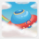 Colourful UFO Spaceship Flying Through Clouds Square Sticker