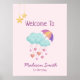 Colourful Umbrella Birthday Card with Cute Clouds Poster