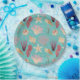 Colourful watercolor illustrations of seashells and underwater plant life create a pattern on aqua background