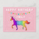 Colourful Unicorn and Bunting Flags Pink Happy Birthday Postcard for Girls. Rainbow colourful unicorn and bunting flags. Add your name.