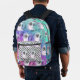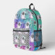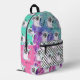Bring some fun to your children’s back to school style with this cute unicorn pattern chequered backpack. Update the template to add a name or monogram initials. The design features a hand drawn illustration of a unicorn wearing glasses with pearls hanging from her horn to her glasses, a unique chequered black and white pattern, and random pattern customisable text for a name or monogram. The background has swirly pastel blue, pink, purple, yellow, and white colours are in the background. Design by Ms_Jade. © Ms_Jade